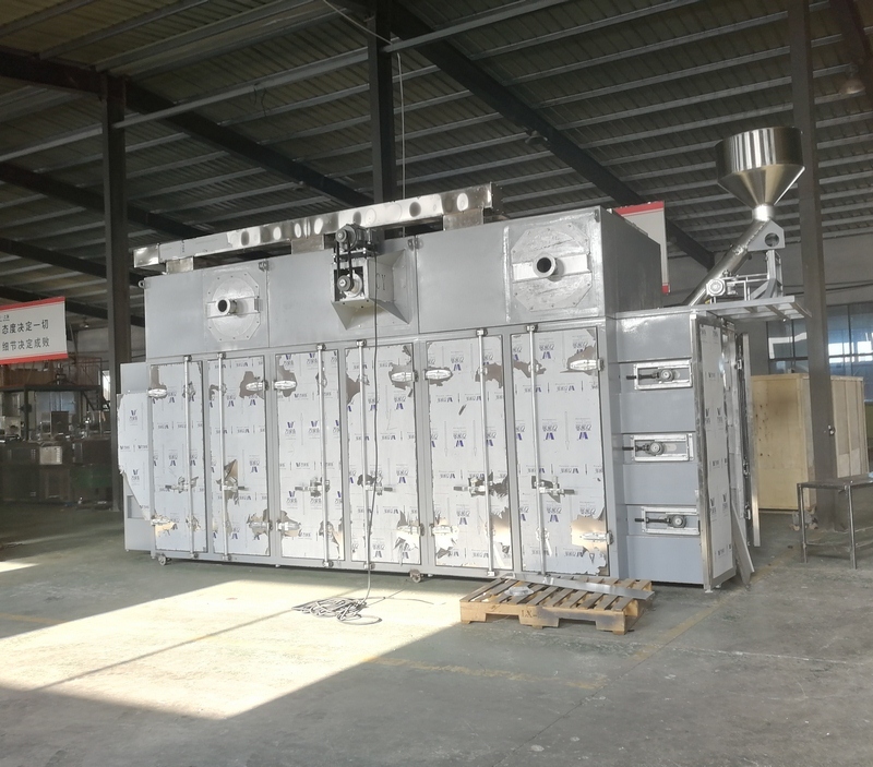 拌粉機(jī)→螺旋上料機(jī)→雙螺桿膨化機(jī)→切斷機(jī)→提升機(jī)→烘干機(jī)