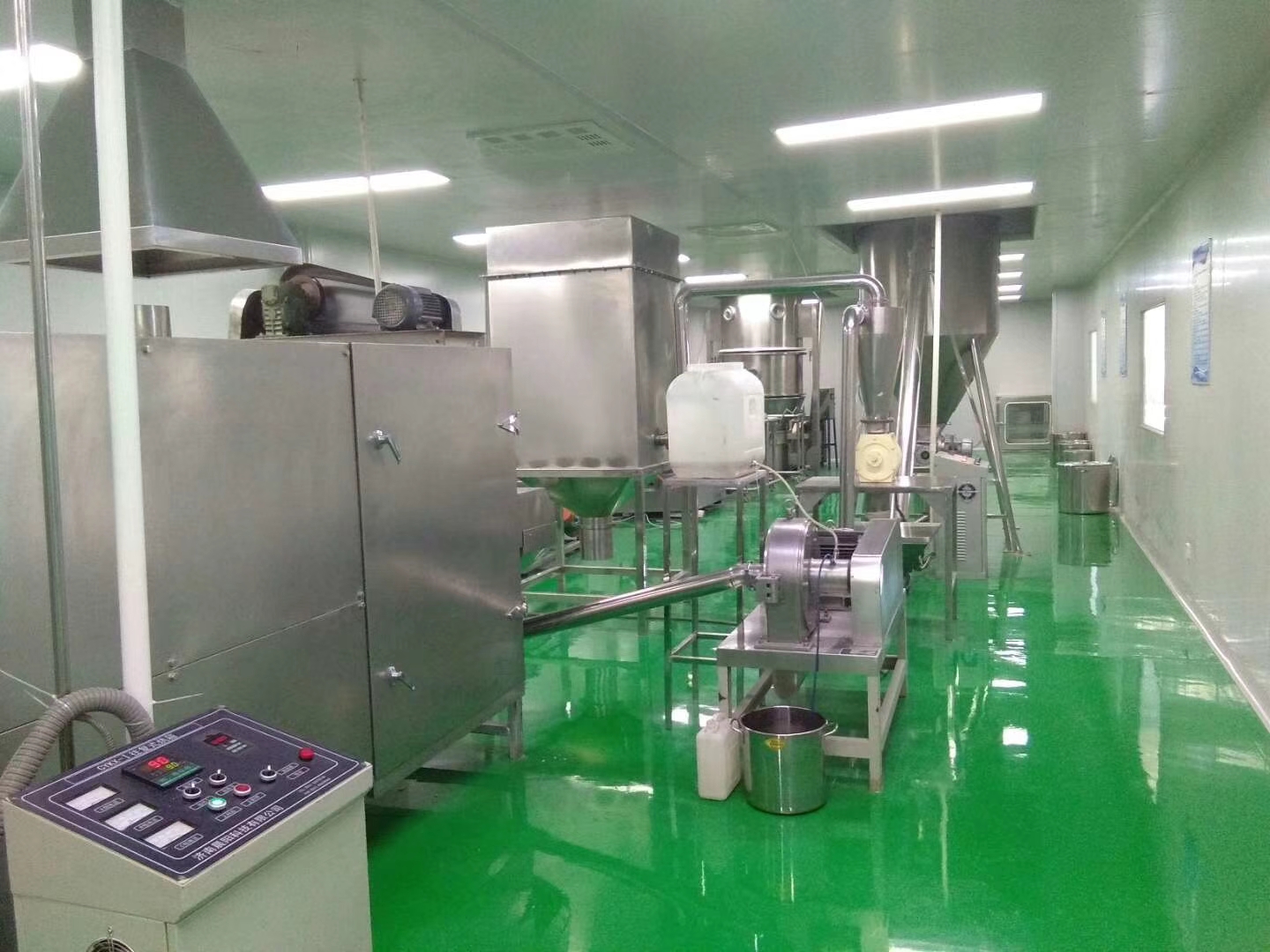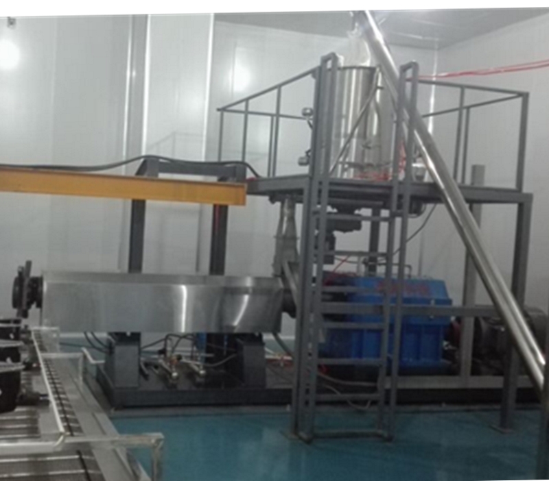 拌粉機→螺旋提料機→膨化主機→風送機→烘干機→除塵粉碎機→批次式混合機→包裝機