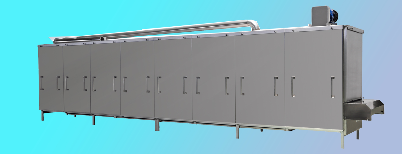 烤箱上料方式:可以直接選用帶爬坡結(jié)構(gòu)和外部借助輸送機(jī)送入烘干機(jī)料床,直接爬坡的烘干機(jī)結(jié)構(gòu)可以更直觀的觀測到物料布料狀況,多用于產(chǎn)量較大的生產(chǎn)線;借助外部上料的烤箱占地面積小,安裝方便,多用于單臺(tái)膨化主機(jī)的生產(chǎn)線配置