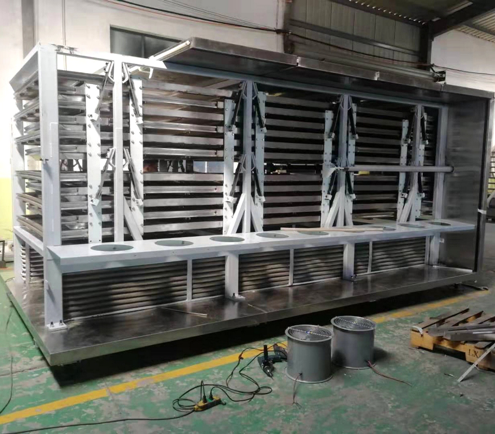 干燥時(shí)物料從設(shè)備頂部的加料口進(jìn)入,在振動(dòng)和自身重力的作用下,物料從上層自下層往復(fù)移動(dòng),后從底層的出料口排出。熱空氣從底層進(jìn)入,穿過帶孔床層往動(dòng),同時(shí)與床層上的物料進(jìn)行充分的傳熱和傳質(zhì),后通過頂部的排濕口排出。